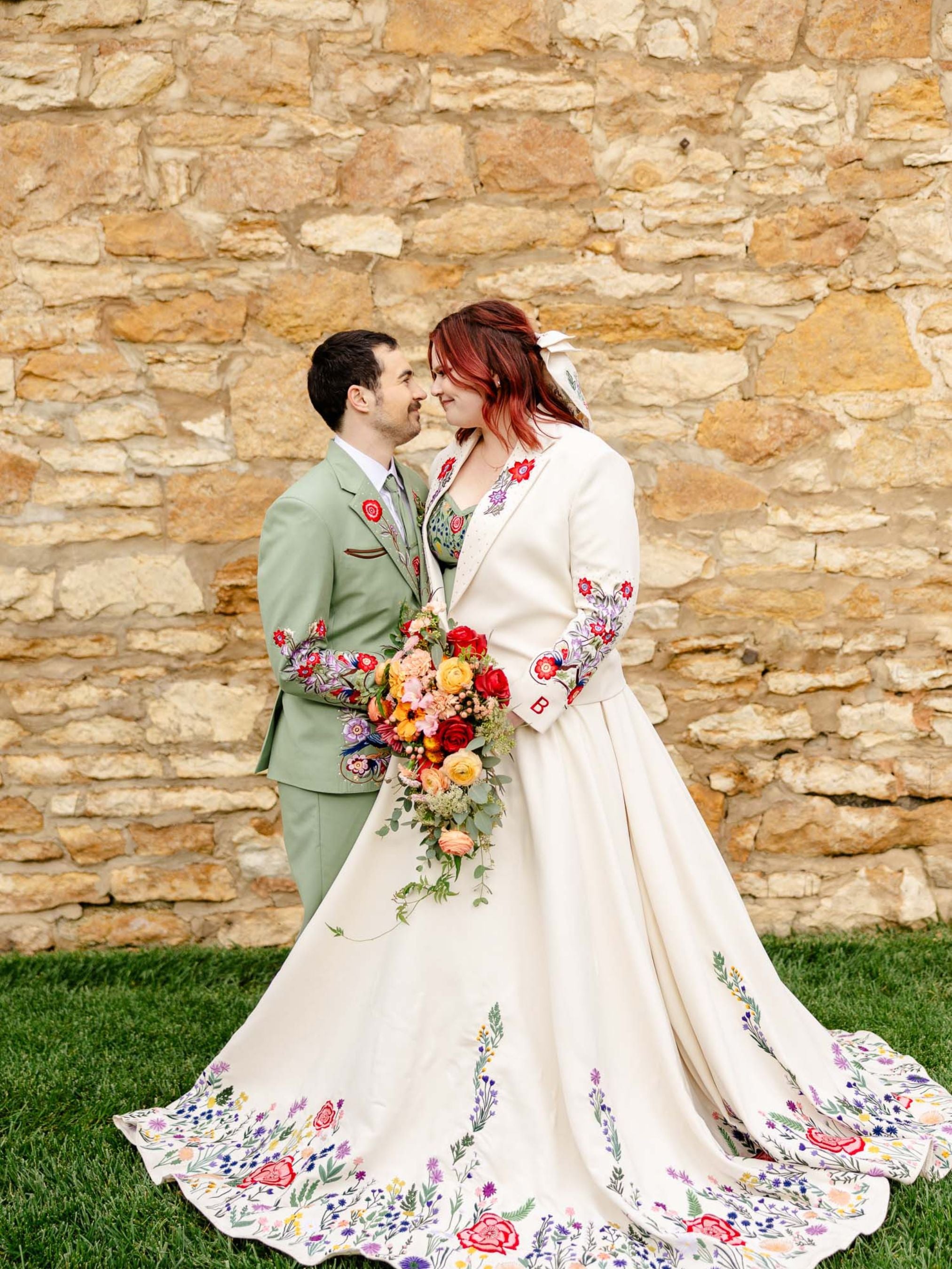 My husband and I had a great experience ordering from Addicted Bespoken for his wedding suit! The customer service was very hands-on, allowing us to make changes to the embroidery pattern based on our preferences and keeping us updated every step of the way. We love that he got to wear something more exciting than just a regular “guy in a suit” wedding suit.
