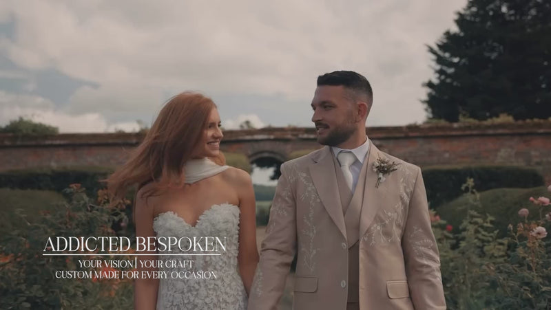 My husband and I had a great experience ordering from Addicted Bespoken for his wedding suit! The customer service was very hands-on, allowing us to make changes to the embroidery pattern based on our preferences and keeping us updated every step of the way. We love that he got to wear something more exciting than just a regular โguy in a suitโ wedding suit.