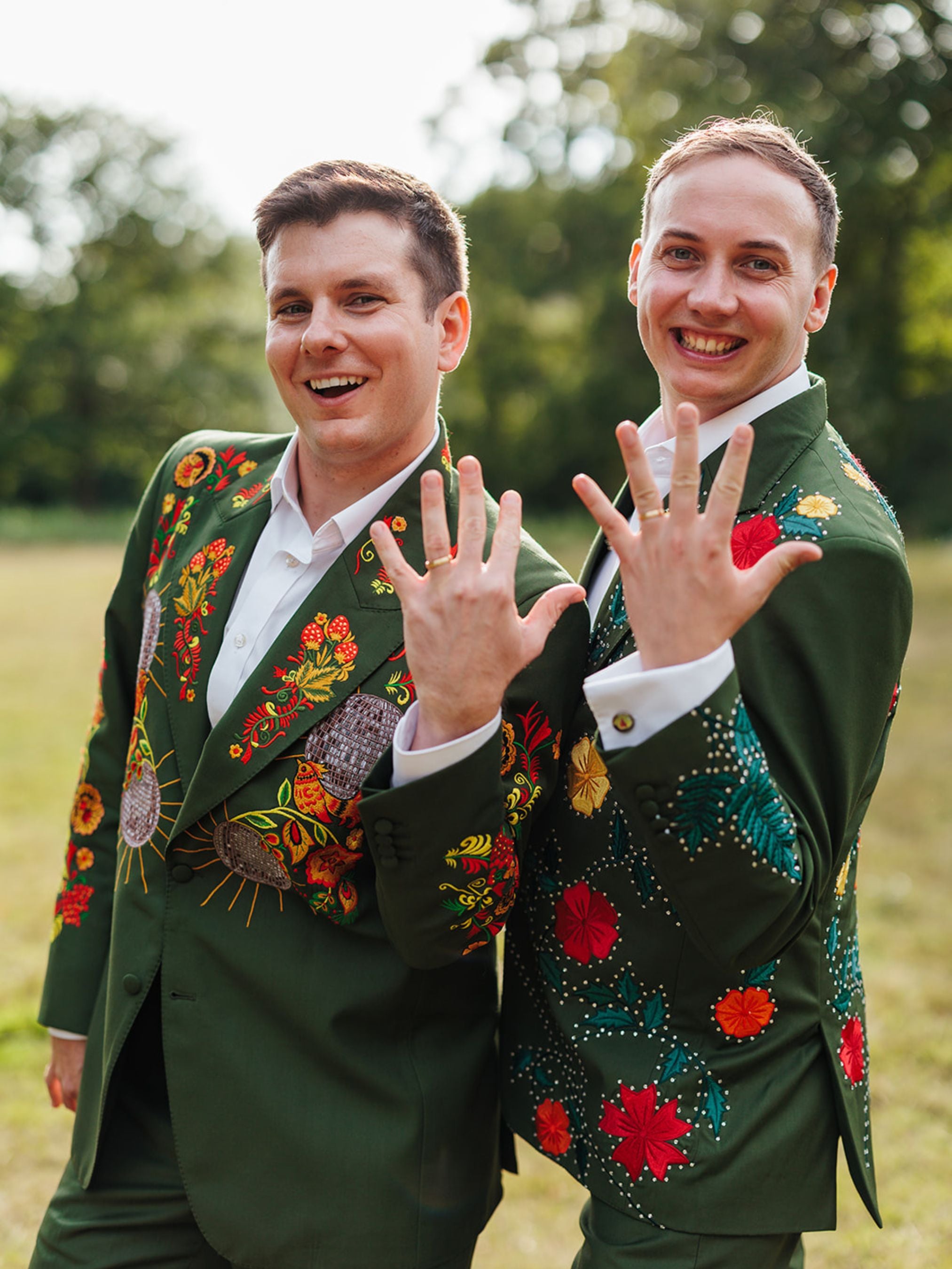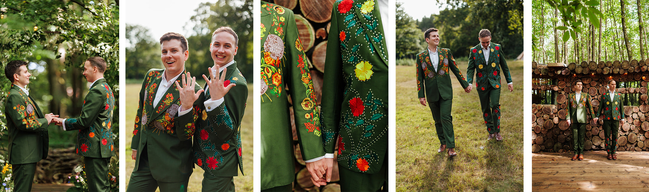 Our couple shined in their custom floral embroidered suits, tailored with pride for their unforgettable day. Love always fits perfectly.