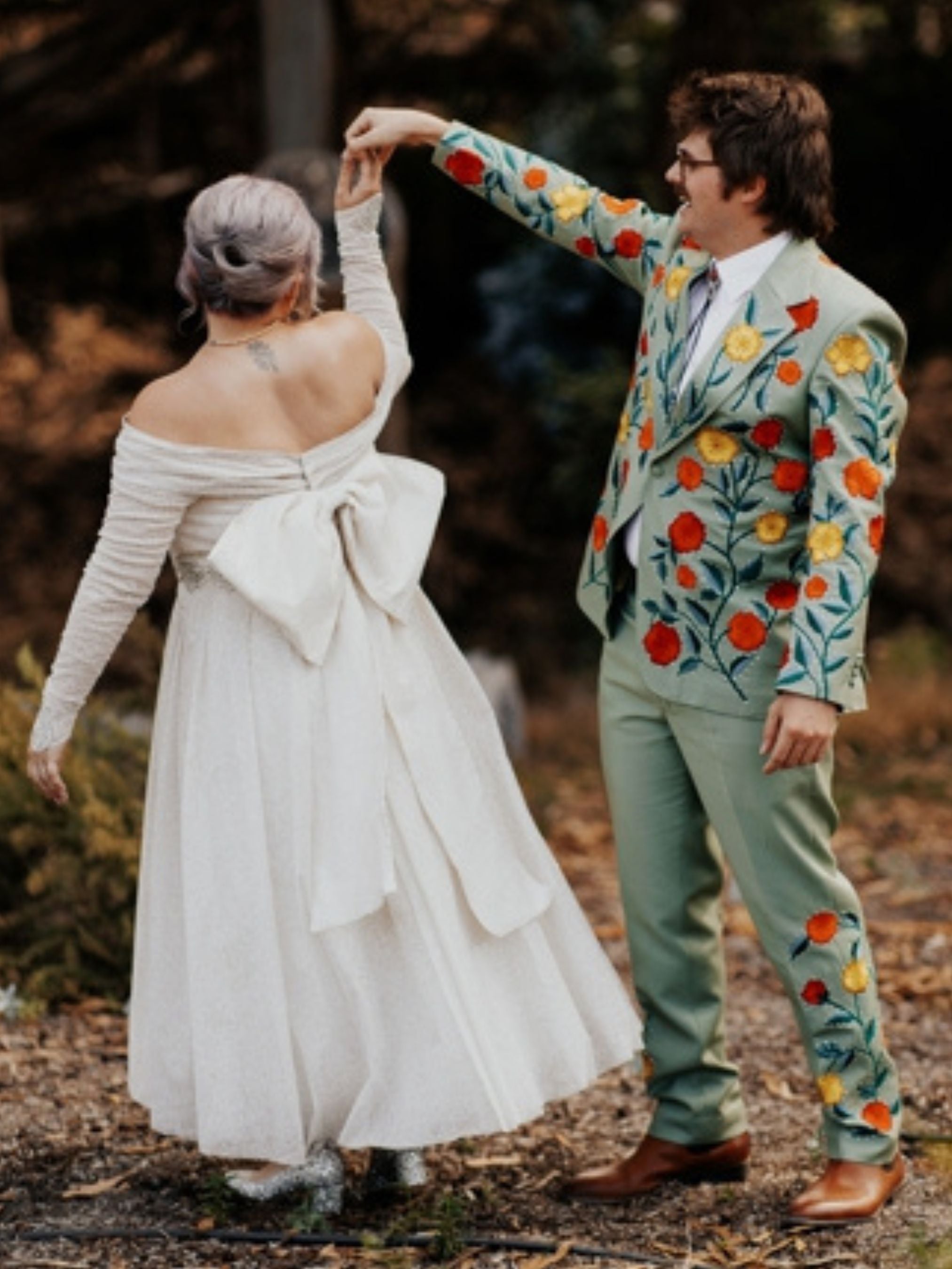Congratulations to the wonderful couple, Pat and Syd! ✨ Pat looked incredibly dashing in our custom-made embroidered suit on his wedding day.