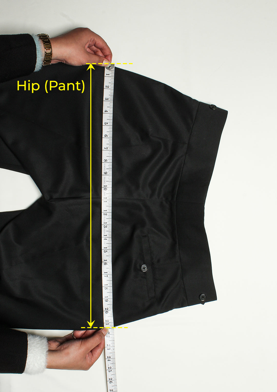 To measure the hip width of pants, lay them flat and measure across the widest part below the waistband. Double the measurement for the full hip circumference.