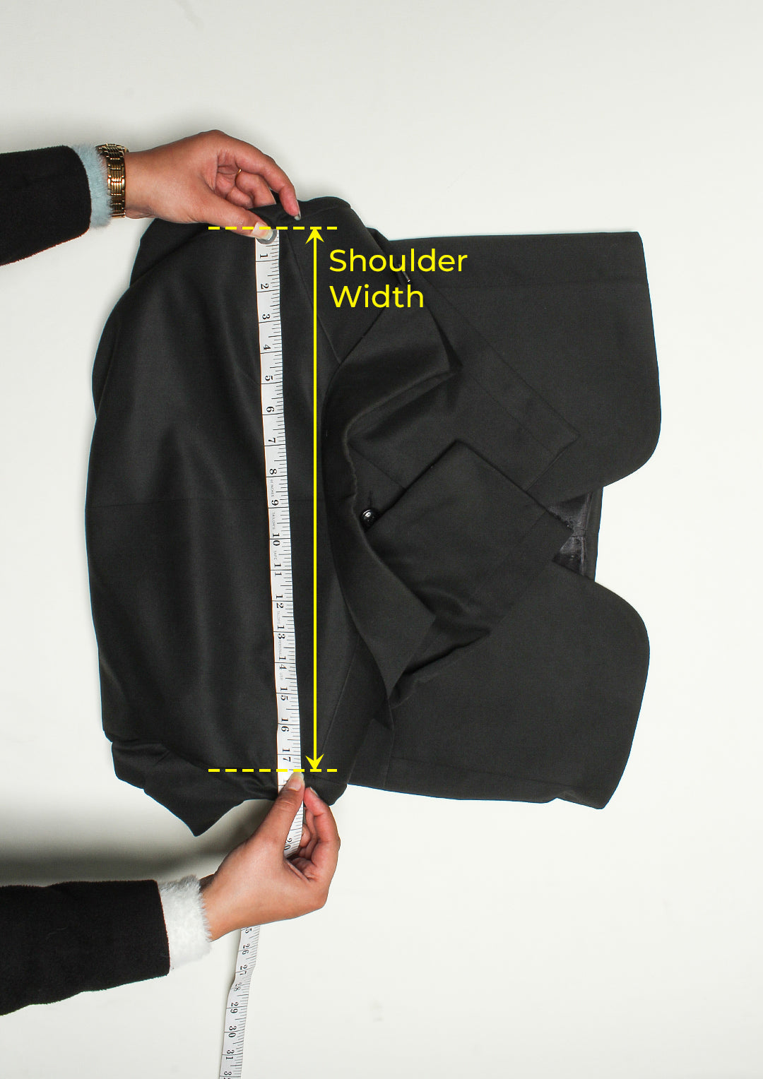 Lay it flat with the back up and measure straight across from one shoulder seam to the other. This ensures a comfortable fit across the shoulders.