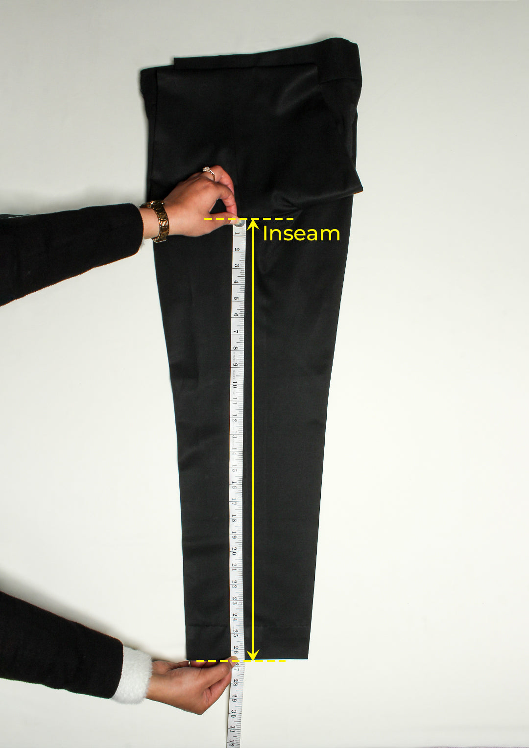 Measure from the crotch seam along the inner leg to the bottom hem.