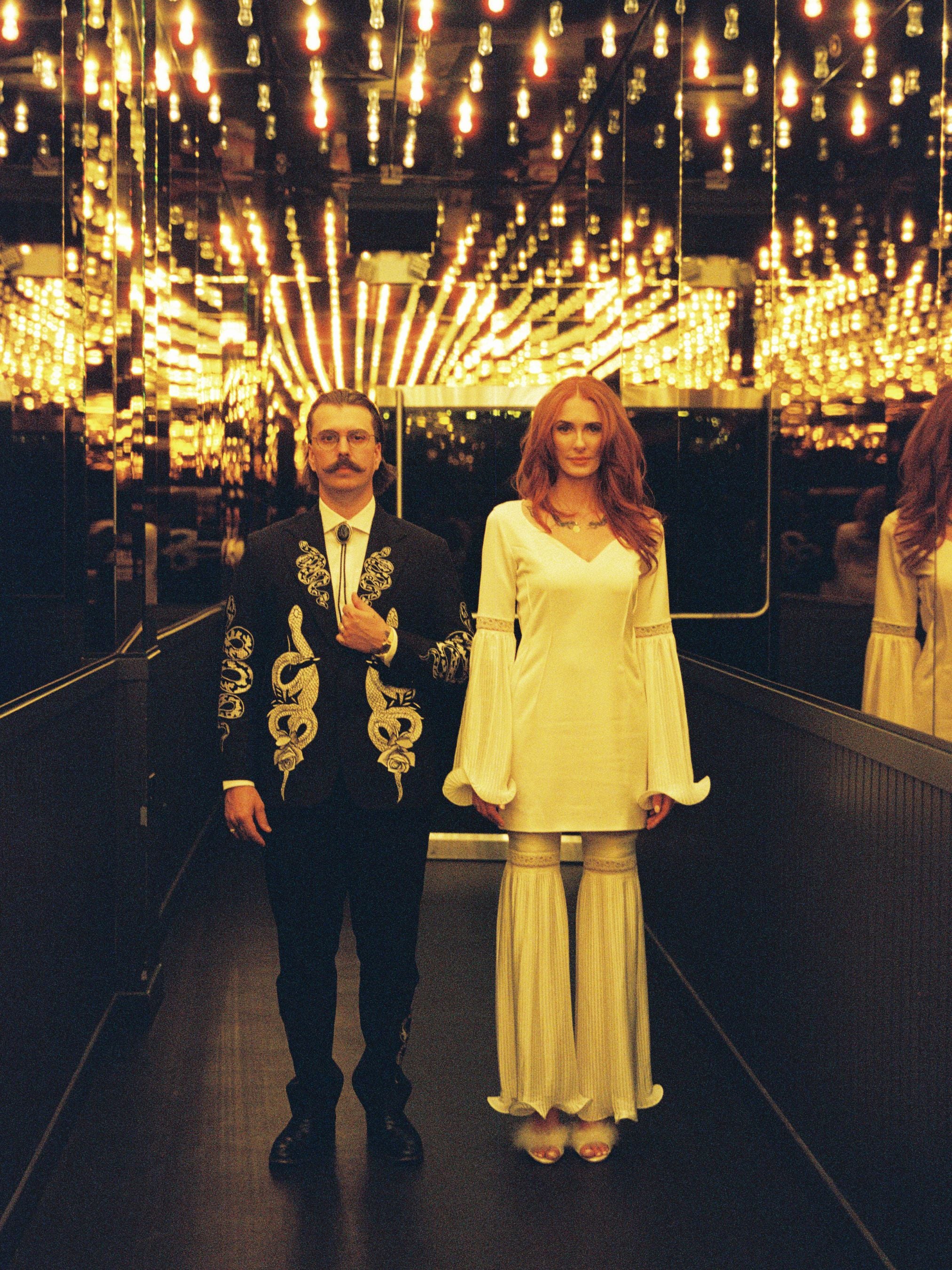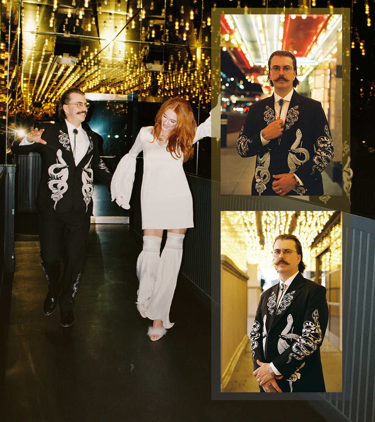 The couple looked elegant on their special day in custom embroidered suits that shared their story. From fine fabrics to detailed embroidery, every part showed its journey, mixing classic style with a modern touch.